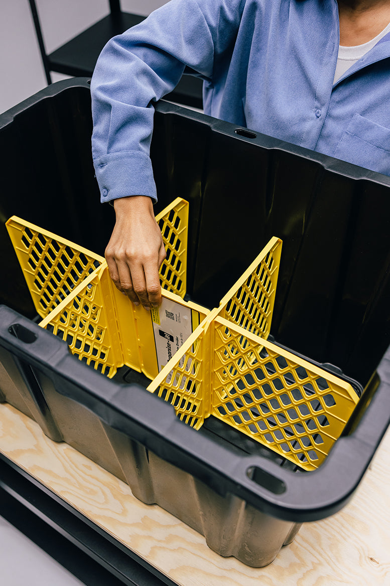 Especialmente diseñado para adaptarse a 27 gal. Tough Totes, este divisor de 6 secciones te ayudará